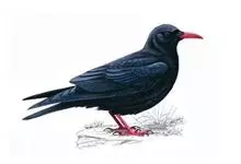 红嘴山鸦,是脊索动物门鸟纲雀形目鸦科鸟类。红嘴山鸦的成鸟通体羽毛纯黑色具有蓝色金属光泽,翼和尾泛有蓝绿色金属光泽;虹膜暗褐色,喙较为尖细,并且呈镰状下弯,喙和脚朱红色。…全部>>