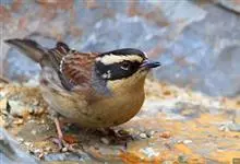 棕眉山岩鹨是岩鹨科、岩鹨属小型鸟类,体长13-16厘米。头和头侧黑色,有一长而宽阔的皮黄色眉纹从额基一直向后延伸至后头侧,在黑色的头部极为醒目。背、肩栗褐色具黑褐色纵纹。两翅黑褐色,翅上有黄白色翅斑。…全部>>