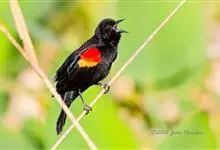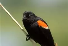 红翅黑鹂,是美洲黑鸟中最出名的是红翅黑鸟,体长19-24厘米,翼展30-37厘米,体重65克,春天雄鸟羽色翅膀上端橘红色连带小块白色,似大帅的红色肩章,头部及爪呈深蓝光泽,所有的羽毛都呈蓝黑色,…全部>>