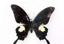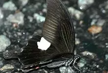 玉斑凤蝶Papilio helenus 别名白纹凤蝶,是凤蝶科凤蝶属美凤蝶亚属大型种类。雌雄同型;体翅皆黑色,后翅正面中室外有3个并列的白色斑,亚外缘有1列模糊的新月形红色斑,…全部>>