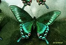 绿带翠凤蝶,又名深山凤蝶,为凤蝶科凤蝶属下的一种。分布于韩国、日本、中国台湾、中国大陆等地。翅黑色,满布金绿色鳞片。前翅亚缘具黄绿色横带纹。后翅外缘有6个略呈新月形的红斑,…全部>>