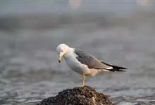 灰翅鸥,夏羽头、颈、腰、尾白色;肩、背和翅上覆羽鸽灰色。冬羽和夏羽相似,但头和颈具淡褐色纵纹,有时扩展至上胸。嘴黄色,下嘴先端具红斑;幼鸟嘴黑色。脚粉红色。栖息于海岸:悬岩,海滨沙滩于近海海岛上。常…全部>>