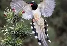 红嘴蓝鹊,别名山鹊、长尾鹊,是鸦科蓝鹊属的一种观赏性较强的大型鸣禽。该物种为体长54~65cm,头、颈、喉和胸黑色,头顶至后颈有一块白色至淡蓝白色或紫灰色块斑,其余上体紫蓝灰色或淡蓝灰褐色。尾长呈凸状,…全部>>