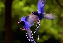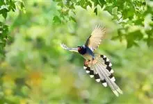 台湾蓝鹊:体长64至65厘米,翼展18至21厘米,尾长约40厘米,尾羽长占了总体长的三分之二。头、脸、颈、喉、胸都是黑色,黄色的眼珠包围黑色的瞳孔,鲜红色的鸟喙、双脚,…全部>>