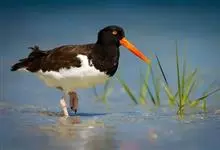 蛎鹬是鸻形目蛎鹬科蛎鹬属。蛎鹬的成鸟夏羽头、颈、胸和上体大部分为乌亮的黑色,腰到尾上覆羽白色,尾羽基部白色,端部黑色;翼上黑色,具有白横斑;下体胸部以下白色,翼下白色带黑缘;虹膜红色,啄和眼圈橘色,…全部>>