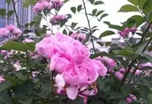 丰花月季是蔷薇科、蔷薇属植物。灌木,高0.9-1.3米,小枝具钩刺或无刺、无毛,羽状复叶,小叶5-7片,宽卵形或卵状长圆形,长2.3-6.0厘米,先端渐尖,基部近圆形或宽楔形。具尖锯齿,无毛。…全部>>