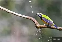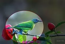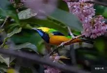蓝翅叶鹎:小型鸟类,体长15-18厘米。雄鸟通体草绿色,尾蓝绿色,肩和翅亮蓝 色,胸缀有黄色,颏、喉黑色。雌鸟颏,喉蓝绿色。栖息在海拔1500米以下的常绿阔叶林、次生林和林缘疏林灌丛中。…全部>>