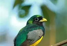 咬鹃共有1科6属39种,属小型攀禽。异趾形,1、2趾向后,3、4趾向前。羽色艳丽,具金属光泽。翅短、圆,次级飞羽及内侧初级飞羽甚短;尾显较翅长,尾羽宽,羽端在成鸟近平截形,在幼鸟则形尖,…全部>>