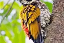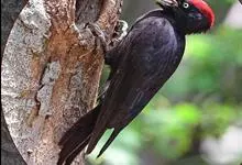 白腹黑啄木鸟,是啄木鸟科、黑啄木鸟属的中型鸟类,体长43-46厘米,头顶具长的红色羽冠,颚纹亦为红色,其余头、颈、胸和上体黑色,腰和腹白色,飞翔时白色腋羽和翅下覆羽亦明显可见。雌鸟头顶黑色,…全部>>