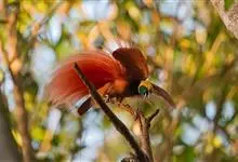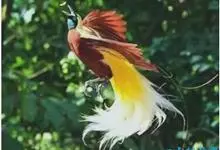 大极乐鸟是极乐鸟属中最大的鸟种。成年雄鸟体长可达到43厘米,雌性可达35厘米。雄鸟的额、颊、喉等墨绿色;头、颈黄色;上体暗赤栗色;腹部葡萄红色,胁部有长饰羽,其基部橙黄,中部黄色,…全部>>
