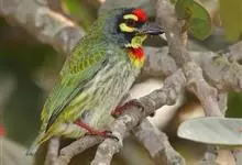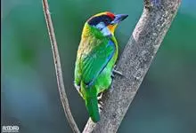 金喉拟啄木鸟,是须鴷科、拟啄木鸟属的鸟类。金喉拟啄木鸟为小型鸟类,体长19-24厘米。额深红色,头顶金黄色,后枕具一大块深红色斑,耳羽和头侧银灰色,上体草绿色,颏和上喉金黄色,下喉淡银灰色,…全部>>
