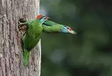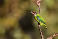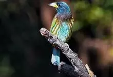 绿拟啄木鸟为鴷形目,须科,拟啄木属的一种。形较大拟啄木鸟略小,体长约260mm。头、颈及胸浅褐而具淡黄白色条纹;喉几为淡黄白色;身体余部草绿色。虹膜棕褐色,眼周裸露部黄色;嘴峰角黄色;跗跖和趾角黄…全部>>