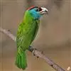 蓝喉拟啄木鸟,是须鴷科、拟啄木鸟属的鸟类。蓝喉拟啄木鸟为小型鸟类,体长20-23厘米。前额至头顶鲜红色,其上有一宽阔的黑色横带,将此红色分为前后二块;头侧、颏、喉蓝色,下喉两侧各具一红色点斑。…全部>>