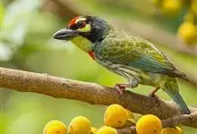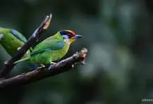 金喉拟啄木鸟,是须鴷科、拟啄木鸟属的鸟类。金喉拟啄木鸟为小型鸟类,体长19-24厘米。额深红色,头顶金黄色,后枕具一大块深红色斑,耳羽和头侧银灰色,上体草绿色,颏和上喉金黄色,下喉淡银灰色,…全部>>