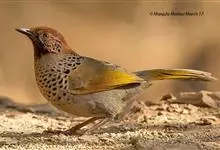 蓝翅噪鹛:噪鹛科、彩翼噪鹛属动物。中型鸟类,体长22-25厘米。上体棕橄榄褐色密被黑色鳞状斑,眼蓝白色,眼上有一长而宽阔的黑色眉纹,从眼先直到颈侧。下体棕褐色被黑色鳞状斑;尾上和尾上覆羽栗色,…全部>>