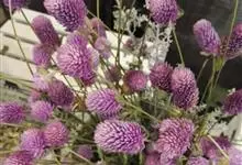 千日红,是苋科千日红属的一年生直立草本植物;茎粗壮,有分枝,枝略成四棱形,有灰色糙毛,幼时更密,节部稍膨大;叶片纸质,长椭圆形或矩圆状倒卵形;花果期6-9月。花色艳丽有光泽,花干后而不凋,经久不变,…全部>>