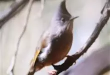 纹喉凤鹛:小型鸟类,体长13-16厘米。头顶和羽冠暗褐色或褐灰色,上体橄榄褐色,飞羽黑褐色,外侧次级飞羽表面橙黄色,构成一块纵形翼斑,极为醒目。颏、喉淡棕白色,具黑色纵纹,腹和尾下覆羽橙黄色。…全部>>