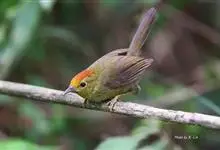金头穗鹛小型鸟类,体长10~11厘米,是一种黄色小鸟。头顶金黄色有黑色纵纹,眼先黑色,在头、颊和耳羽金黄色的衬托下亦甚醒目。上体橄榄黄色,下体亮黄色,腹和两胁沾绿。…全部>>