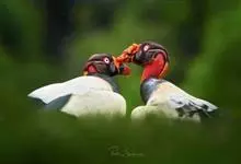 王鹫:是美洲鹫科、王鹫属大型食腐鸟类。体型很大,体长约78厘米。头部裸露,色彩极鲜艳醒目。嗉囊发达。尾短。它的头部及颈部没有羽毛,皮肤颜色有异,包括黄色、橙色、蓝色、紫色及红色。…全部>>