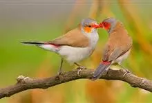 橙颊梅花雀体长约10厘米,头部灰色,两侧有大块橙色区域,嘴基及眼下方有黑纹,两条黑纹间呈白色,颊部有橙红色块斑,喙为红色至橙红色,背部及翼为褐色,腰为鲜红色,身体腹面淡灰色,腹部白色至皮黄色,…全部>>