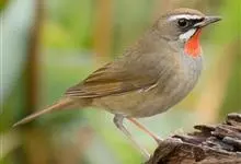 红点颏:是鸟纲、鹟科的鸣禽。又名西伯利亚歌鸲。体长14-17厘米,体重16-27克。雄鸟头部、上体主要为橄榄褐色。眉纹白色。颏部、喉部红色,周围有黑色狭纹。胸部灰色,腹部白色。雌鸟颏部、喉部不呈赤红色,…全部>>