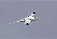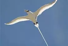 白尾鹲:体重220-410克;体长370-400毫米,加上延长的尾羽为680-990毫米,是一种中型热带海鸟。全身羽毛主要为白色,繁殖期微缀有橙色。眼前和眼后有粗著的黑色斑,像两条粗黑的眼眉。…全部>>
