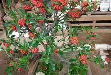 火棘 H. L. Li)是蔷薇科火棘属常绿灌木,老枝呈暗褐色;叶片呈倒卵形,边缘有钝锯齿,齿尖向内弯,两面皆无毛;叶柄短,无毛或嫩时有柔毛;花序是复伞房状,花瓣呈白色近圆形;果球近圆形,…全部>>