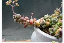 红数珠是景天科青锁龙属植物,叶片对生,叶片长圆型,叶片肥厚。叶片表面有不规则凸起的白色颗粒,就象面包的表面撒了白色的佐料一样。红数珠花开乳白色,…全部>>