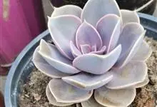 紫珍珠是景天科石莲花属的多年生肉质草本植物。植株中小型;叶片肉质,匙形,呈莲座状紧密排列;叶片粉紫色,叶缘呈粉白色,光照充足时颜色亮丽,不足时叶色会呈现深绿色或灰绿色,叶面光滑,被轻微白粉,…全部>>