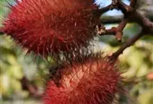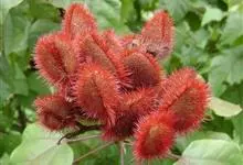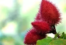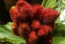 红木是红木科红木属常绿灌木或小乔木,高可达10米,叶片心状卵形或三角状卵形,叶柄长2.5~5厘米,无毛;圆锥花序顶生,花序梗粗壮,萼片和花瓣倒卵形;蒴果近球形或卵圆形,密生栗褐色长刺;种子卵圆形,…全部>>