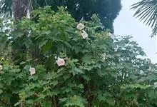 木芙蓉,锦葵科木槿属落叶灌木或小乔木。小枝上有细绒毛;叶片为卵状心形,托叶为披针形,常早落;花单生,花萼为钟形,花冠初为白色或淡红色,后逐渐变为深红色;果实为扁球形,有淡黄色的毛附着。花期8到10月。…全部>>