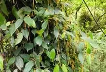 华南胡椒是胡椒科胡椒属木质攀援藤本灌木;枝有纵棱,节上生根。叶片厚纸质,无明显腺点,花枝下部叶阔卵形或卵形,顶端短尖,基部通常心形,两侧相等,上部叶卵形、狭卵形或卵状披针形,网状脉明显;叶鞘长为叶柄…全部>>