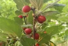 樱桃属于乔木,株高达3-8米,树皮红褐色;嫩枝无毛或被疏柔毛;冬芽无毛;叶卵形或长圆状倒卵形,先端渐尖或尾尖,基部圆,有尖锐重锯齿,齿端有小腺体,上面近无毛,下面淡绿色,…全部>>