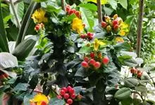 红果金丝桃,园艺栽培品种,属于被子植物门木兰纲金虎尾目金丝桃科金丝桃属。学名:Hypericum × inodorum ‘Excellent Flair’常绿灌木,高1.2米。单叶对生,无柄,椭圆形,…全部>>