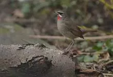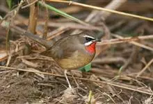 红点颏:是鸟纲、鹟科的鸣禽。又名西伯利亚歌鸲。体长14-17厘米,体重16-27克。雄鸟头部、上体主要为橄榄褐色。眉纹白色。颏部、喉部红色,周围有黑色狭纹。胸部灰色,腹部白色。雌鸟颏部、喉部不呈赤红色,…全部>>