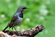黑胸歌鸲是鹟科、歌鸲属小型鸟类,体长13-16厘米。上体石板灰褐色或橄榄褐色,头和颈侧黑色,眉纹和颧纹白色,在暗色的头部极为醒目。两翅和尾黑褐色,外侧尾羽具白色端斑。下体颏、喉雄鸟深红色,雌鸟白色。…全部>>