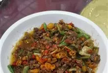 小炒黄牛肉是以牛肉、青尖椒、红尖椒等食材制成的一道菜品,香味浓郁,味道鲜美,…全部>>