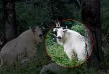 羚牛,偶蹄目牛科羚牛属哺乳动物,俗称扭角羚、野山牛、盘羊。其体形粗壮。尾短。吻鼻部隆起且裸露。前额隆起,毛短而蓬松。角基粗,由头顶长出后先向上升起,又突然翻转,靠近头部,复向外伸,然后又向后弯转,…全部>>