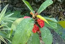 虎刺梅:别称铁海棠,是蔓生灌木植物。茎多分枝,长60-100厘米,直径5-10毫米,具纵棱,密生硬而尖的锥状刺,刺长1-1.5厘米,直径0.5-1.0 毫米,常呈3-5列排列于棱脊上,呈旋转。叶互生…全部>>