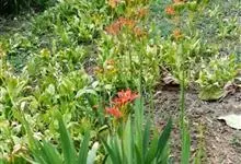 射干 Redouté)是鸢尾科射干属多年生草本植物。根状茎为不规则的块状,斜黄色或黄褐色;花橙红色,散生紫褐色的斑点;花药呈条形;子房下位,倒卵形;蒴果倒卵形或长椭圆形;种子圆球形,黑紫色,有光泽。…全部>>