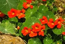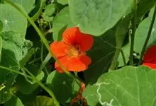 旱金莲是旱金莲科旱金莲属蔓生一年生草本植物。叶互生,叶柄向上扭曲,盾状,叶圆形,具波状浅缺刻,下面疏被毛或有乳点;花黄、紫、桔红或杂色,花托杯状,花瓣为圆形,边缘具缺刻;果实为扁球形;花果期6-10月,…全部>>