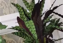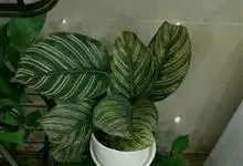 孔雀竹芋:竹芋科,肖竹芋属多年生常绿草本植物。植株挺拔株高可达60厘米。叶柄紫红色, 叶片薄革质,卵状椭圆形,叶面上有墨绿与白色或淡黄相间的羽状斑纹,就像孔雀尾羽毛上的图案,因而得名。…全部>>