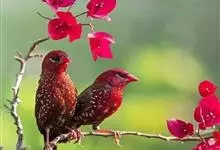 红梅花雀小型鸟类,体长9-10厘米。雄鸟通体朱红色,背、肩、胸等满布白色小斑点,两翅和尾黑褐色均具白色端斑,嘴红色,脚蜡黄色。雌鸟上体淡褐色或赭褐色,翅上中覆羽、大覆羽和内侧飞羽末端具白色斑点,…全部>>