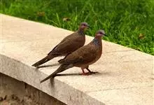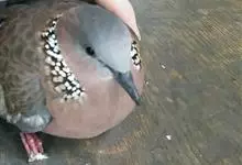 珠颈斑鸠,别名花斑鸠、珍珠鸠、花脖斑鸠、鸪鹪,是鸠鸽科副斑鸠属鸟类。体型中等,体长27~34cm,体重120~205g,雌鸟和雄鸟羽色相似,但雌鸟不如雄鸟羽色亮泽。珠颈斑鸠前额至头顶羽色稍淡,…全部>>