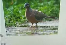 珠颈斑鸠,别名花斑鸠、珍珠鸠、花脖斑鸠、鸪鹪,是鸠鸽科副斑鸠属鸟类。体型中等,体长27~34cm,体重120~205g,雌鸟和雄鸟羽色相似,但雌鸟不如雄鸟羽色亮泽。珠颈斑鸠前额至头顶羽色稍淡,…全部>>