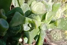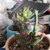 筒叶花月,是景天科青锁龙属的多年生草本植物。植株多分株,灌木状,茎较粗壮,圆柱形,表皮灰褐色;叶片肉质,互生,呈圆筒状,簇生于茎或分枝顶端,叶端呈斜截形,截面为椭圆形;花呈星状,淡白色;花期秋季。…全部>>
