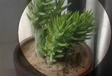 筒叶花月,是景天科青锁龙属的多年生草本植物。植株多分株,灌木状,茎较粗壮,圆柱形,表皮灰褐色;叶片肉质,互生,呈圆筒状,簇生于茎或分枝顶端,叶端呈斜截形,截面为椭圆形;花呈星状,淡白色;花期秋季。…全部>>