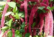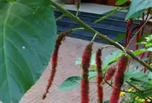 红穗铁苋菜:为大戟科、铁苋菜属植物,灌木,高0.5-3米。嫩枝被灰色短绒毛,毛逐渐脱落,小枝无毛。 花序色泽鲜艳,葇荑花序下垂,如狐狸尾状,雌花近卵形,长约0.8毫米,顶端急尖,具短毛;子房近球形,…全部>>
