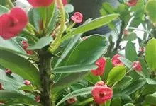 猩猩草:常绿或半常绿灌木,盆栽时株高0.5米-2米,在亚热带地区可长到6米以上。茎直立而光滑,单叶互生,卵状椭圆形至阔披针形,具不规则的深缺刻。长10-15厘米。花小,有蜜腺,排列成密集的伞房花序。…全部>>