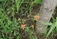 射干 Redouté)是鸢尾科射干属多年生草本植物。根状茎为不规则的块状,斜黄色或黄褐色;花橙红色,散生紫褐色的斑点;花药呈条形;子房下位,倒卵形;蒴果倒卵形或长椭圆形;种子圆球形,黑紫色,有光泽。…全部>>